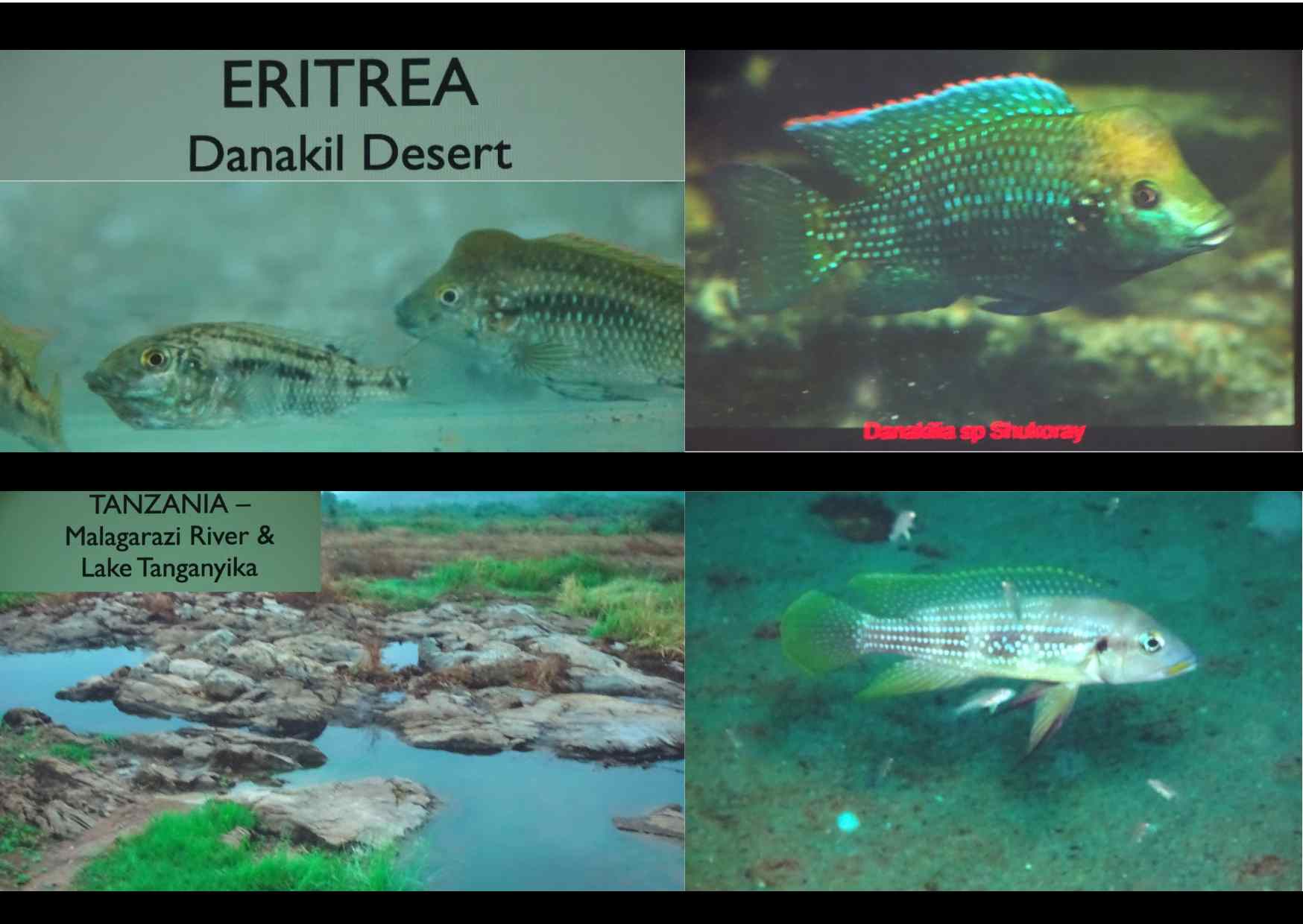 During the lecture, we traveled to a very interesting place in East Africa, Eritrea, which is located on the Red Sea right next to Sudan. There, the team led by Dr. Lamboj set out for the flooded Danakil Depression, which has its lowest point, now hold on tight, approximately 125 meters below sea level. The goal was nothing less than the fascinating cichlid from the African desert, Danakilia sp. 'Shukoray'.
