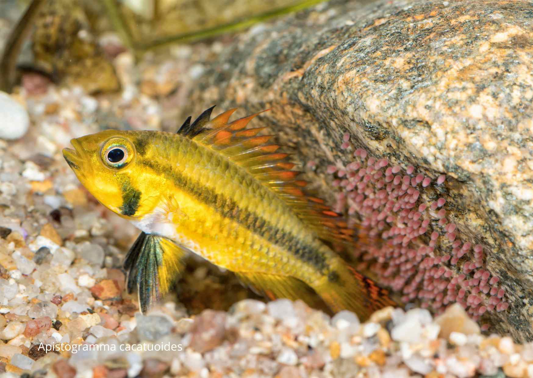 2. oder „Substratbrüten“, bei dem Eier auf verschiedenen Substraten wie Aquarienglas, Steinen, Pflanzen abgelegt werden. Diese werden dann geschützt und gepflegt. Nach dem Schlüpfen werden die Jungtiere betreut, bis sie vollständig selbstständig sind.