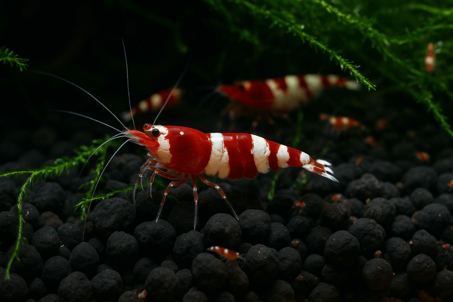Nabízím zdravé a vitální krevetky Caridina Red Wine z vlastního chovu.​ Jedná se o atraktivní variantu s tmavším červeným zbarvením a bílým vzorem.​ Krevetky jsou chované ve stabilních podmínkách,​ není nutná osmotická voda.​