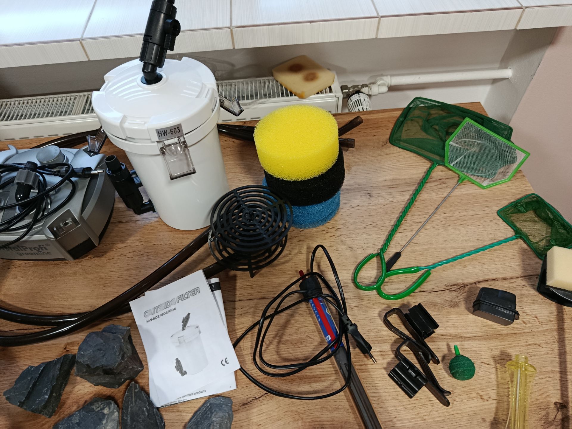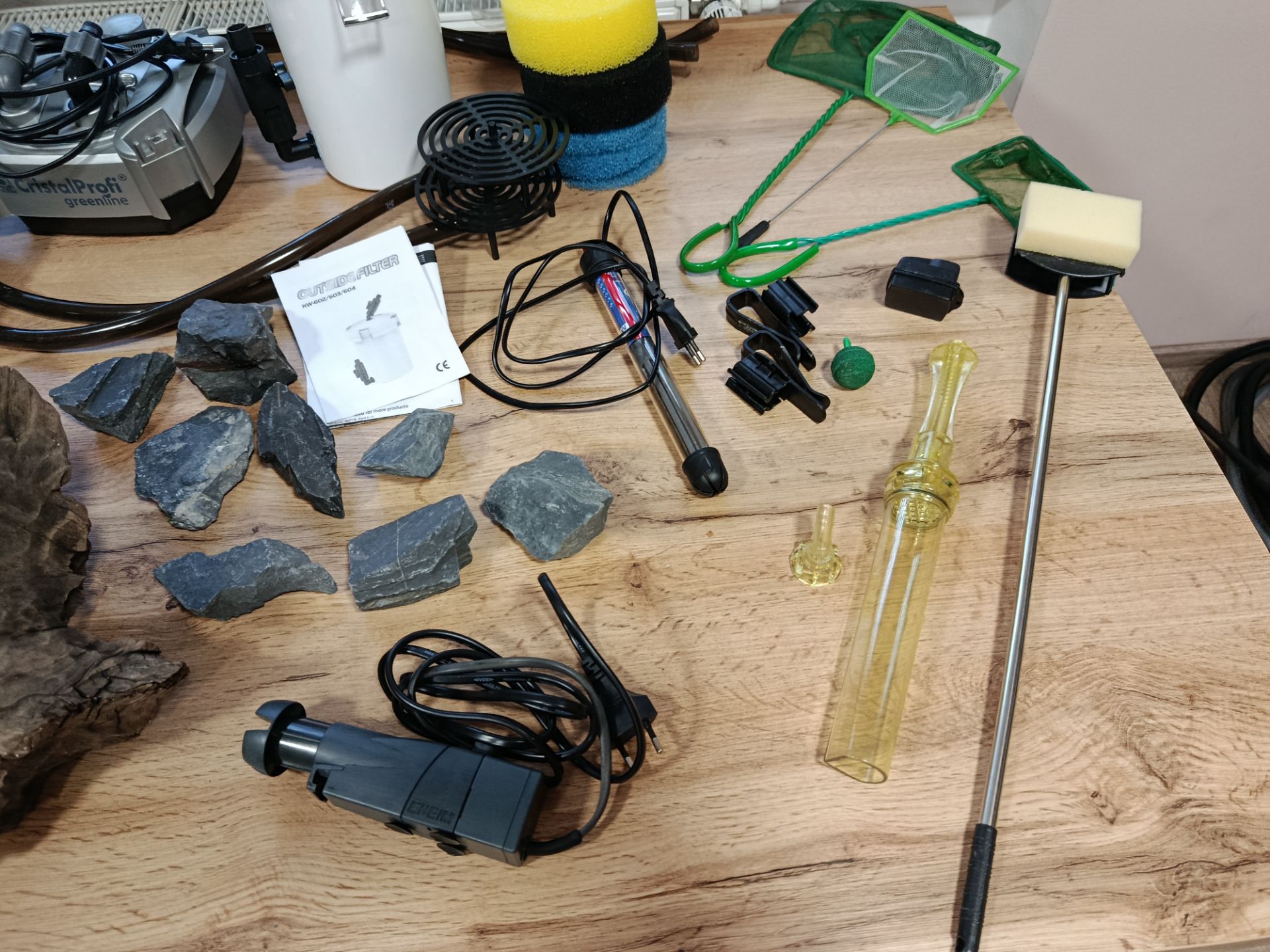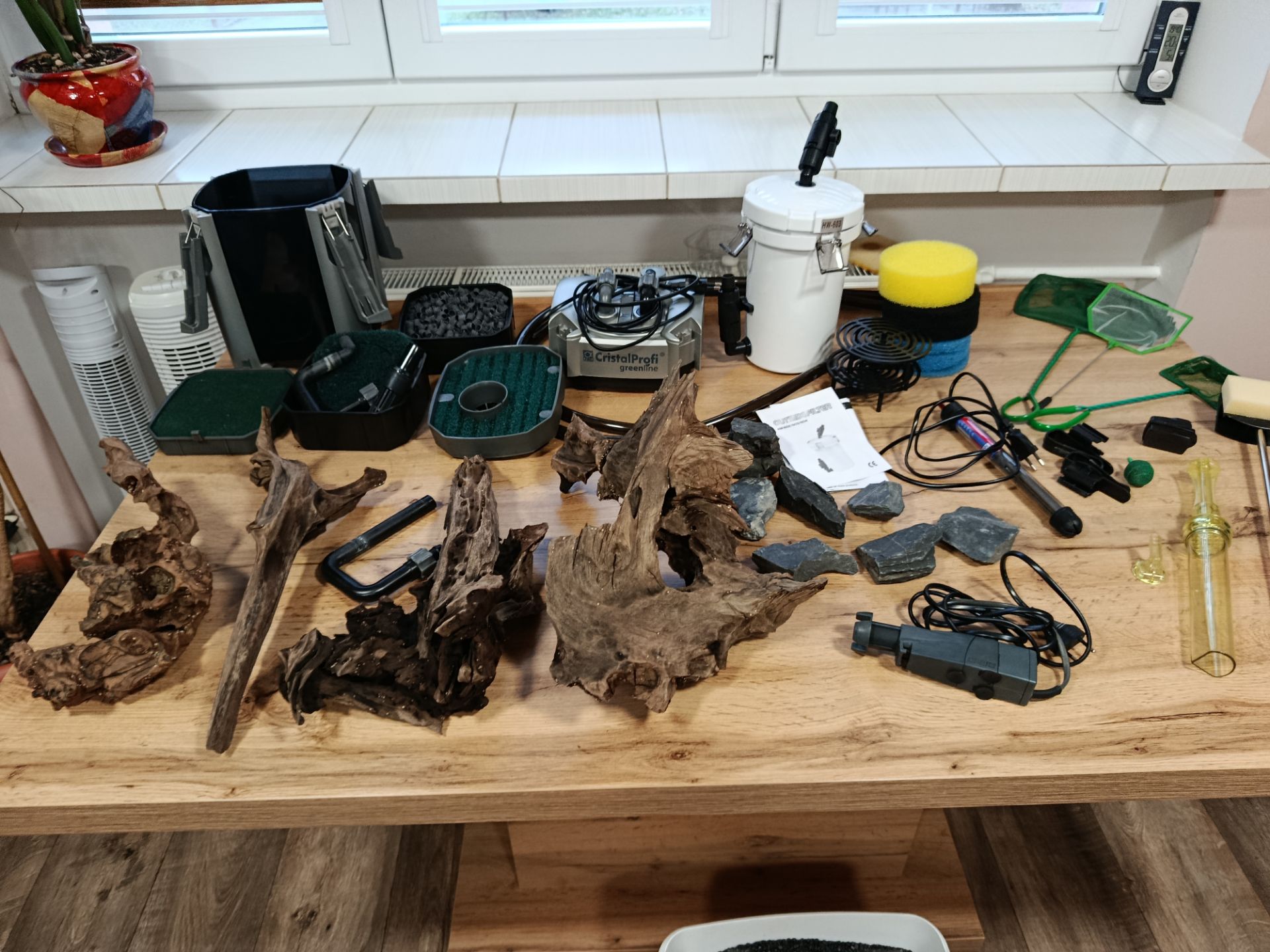 Prodam akvarium 805050 12.2.26 vypuštěno 200 l, 2 kusy osvětlení osvětlení 75 cm až 100 cm cca pul roku staré vnější filtr cristal profi 701 -700 litru za hodinu , predfilt sunsun 603 , hladinový sběrač , topitko aqua nova NHA 150, 4 kořeny cca 40-45 cm,23 kg černého akva sterku , břidlici, síťky,odkalovac, heblo na čištění skla, magnet na čištění skla , nějaké uchytky na filtrační hadice,, vzduchovavci kaminky.. dohoda možná cena popř dohodou. Odběr Holešov