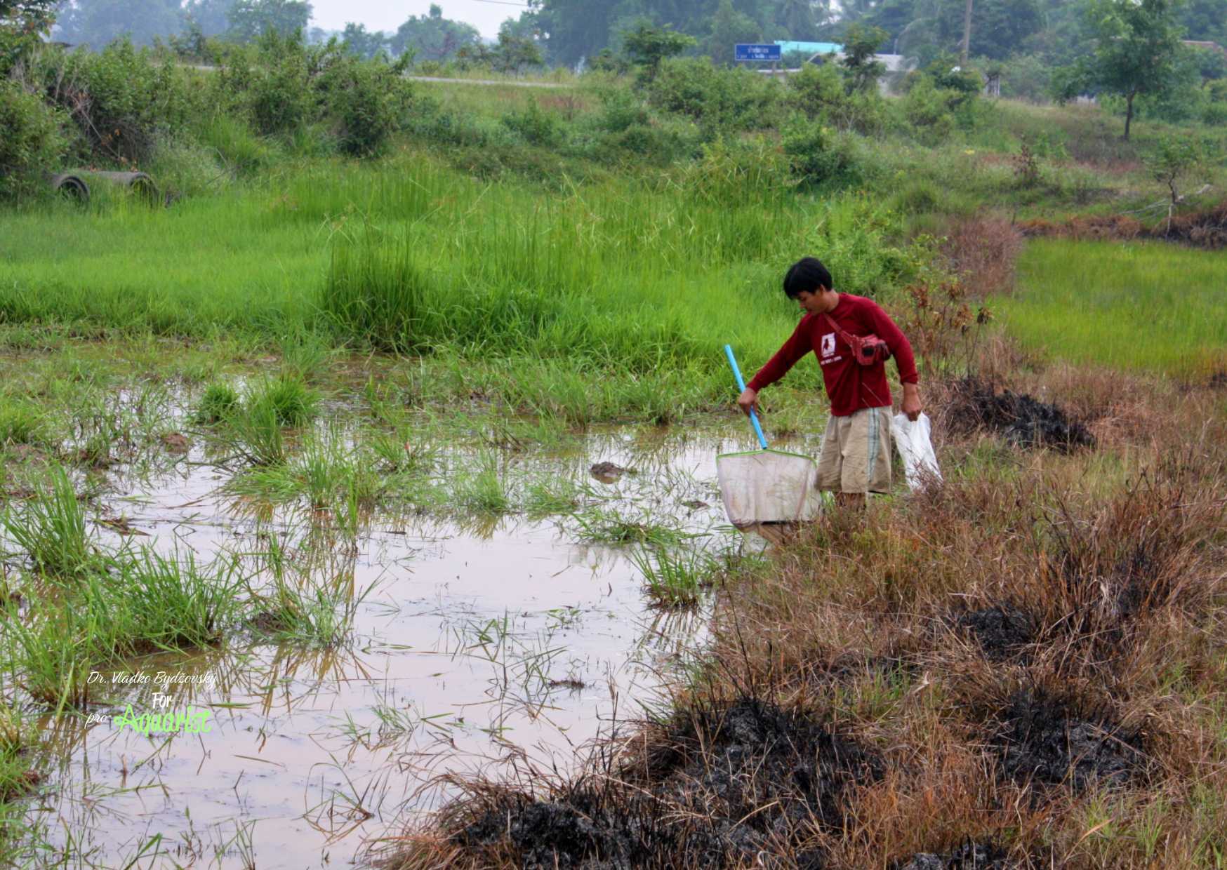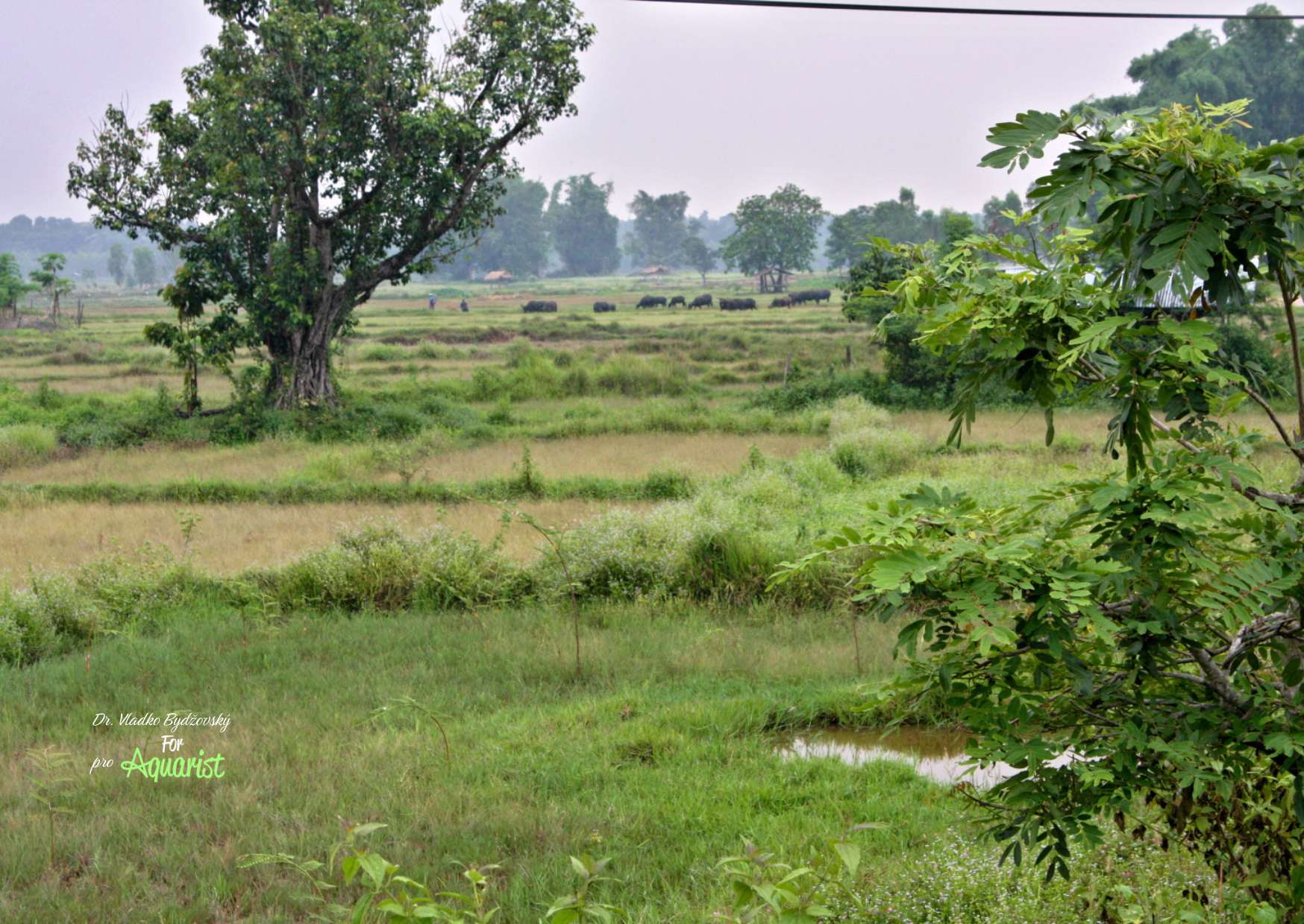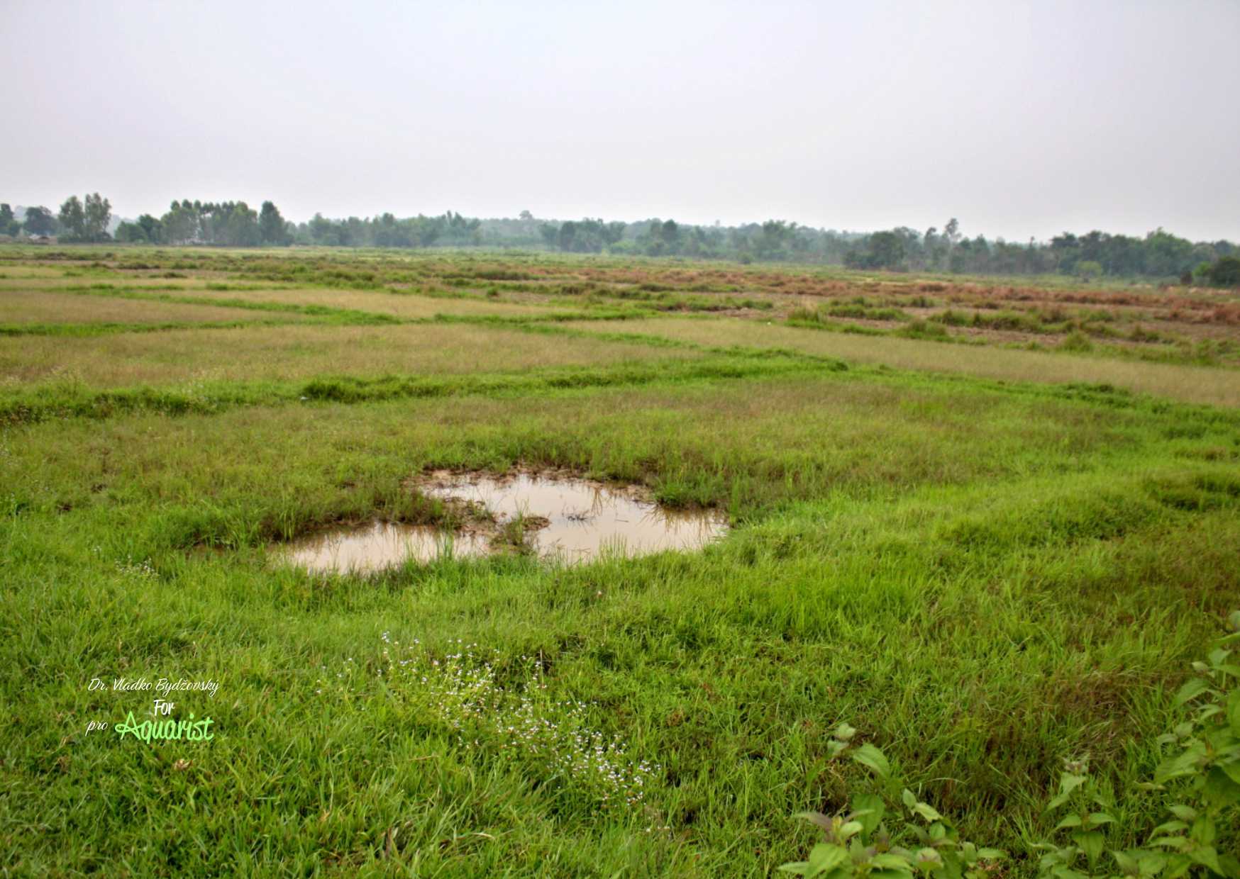 About half a kilometer behind the village there was an extensive rice field, at the end of which a few pieces of local cattle grazed. But even here there was life interesting for an aquarist!