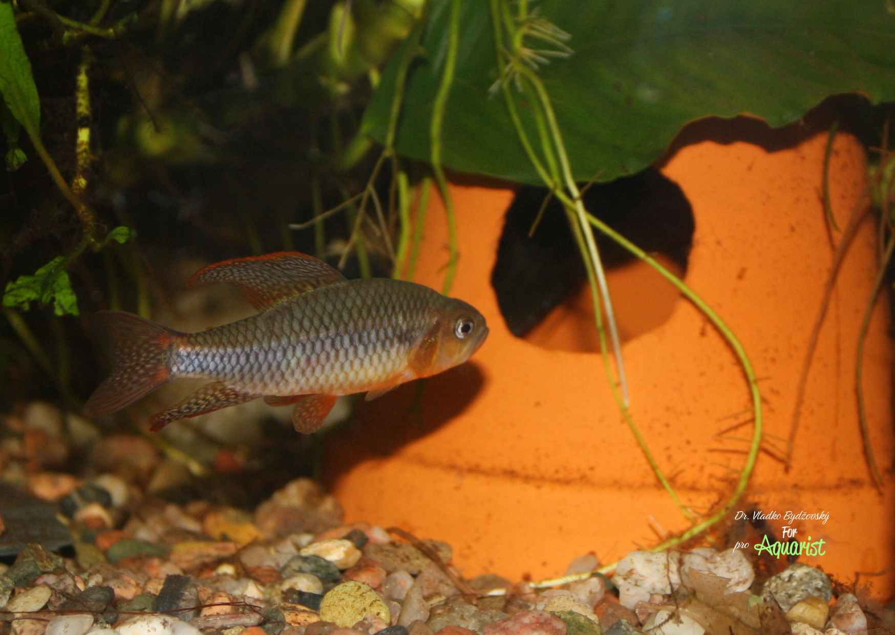 Due to the large mouth, I started feeding fine artemia nauplii. However, after 14 days of overfeeding, I made an unfortunate observation that is well known to aquarists breeding red neon tetras in a similar way. The fish had swollen bellies and, except for three individuals, all died during the day. That was a lesson for future breeding. I transferred the young ones to a 20-liter tank for further care.I offered the male a tube with a diameter of 4 cm and a length of 12 cm. When he discovered it, he practically never left it. Only occasionally and for a while, when he set out for food. The females fill up quickly with good care.