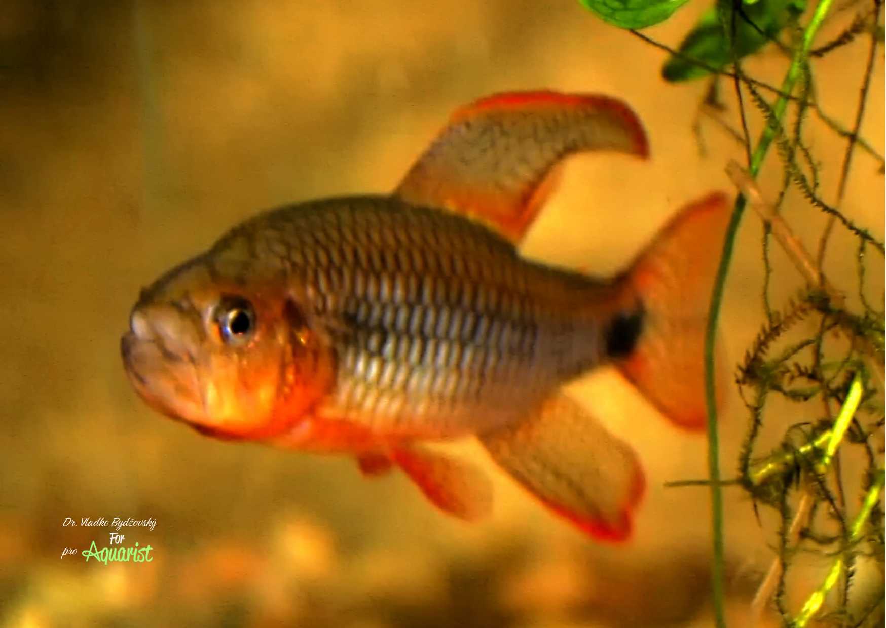 A typical feature is both a large mouth that inspires respect, especially among aquarists., on the one hand, the males have beautifully colored and elongated dorsal fins. The fish has been known to aquarists for a long time (Kuntzschmann, 1912), but it has never spread much. Perhaps their shyness is the reason. In a well-planted aquarium with caves and roots, we can't observe them much. Perhaps the reason is also that especially the females are not particularly attractive. Surely, the fact that live food is necessarily part of their good condition will also play a role.It is not always easy to find it. If we want to breed them, it is even a necessity.
