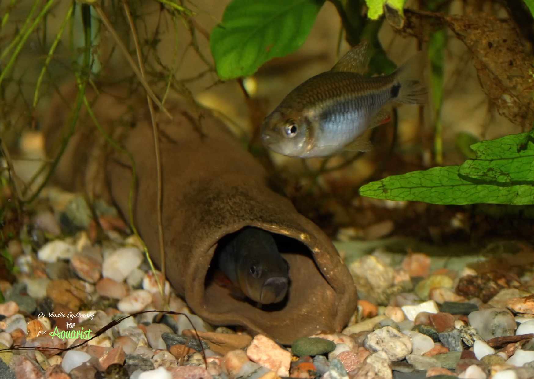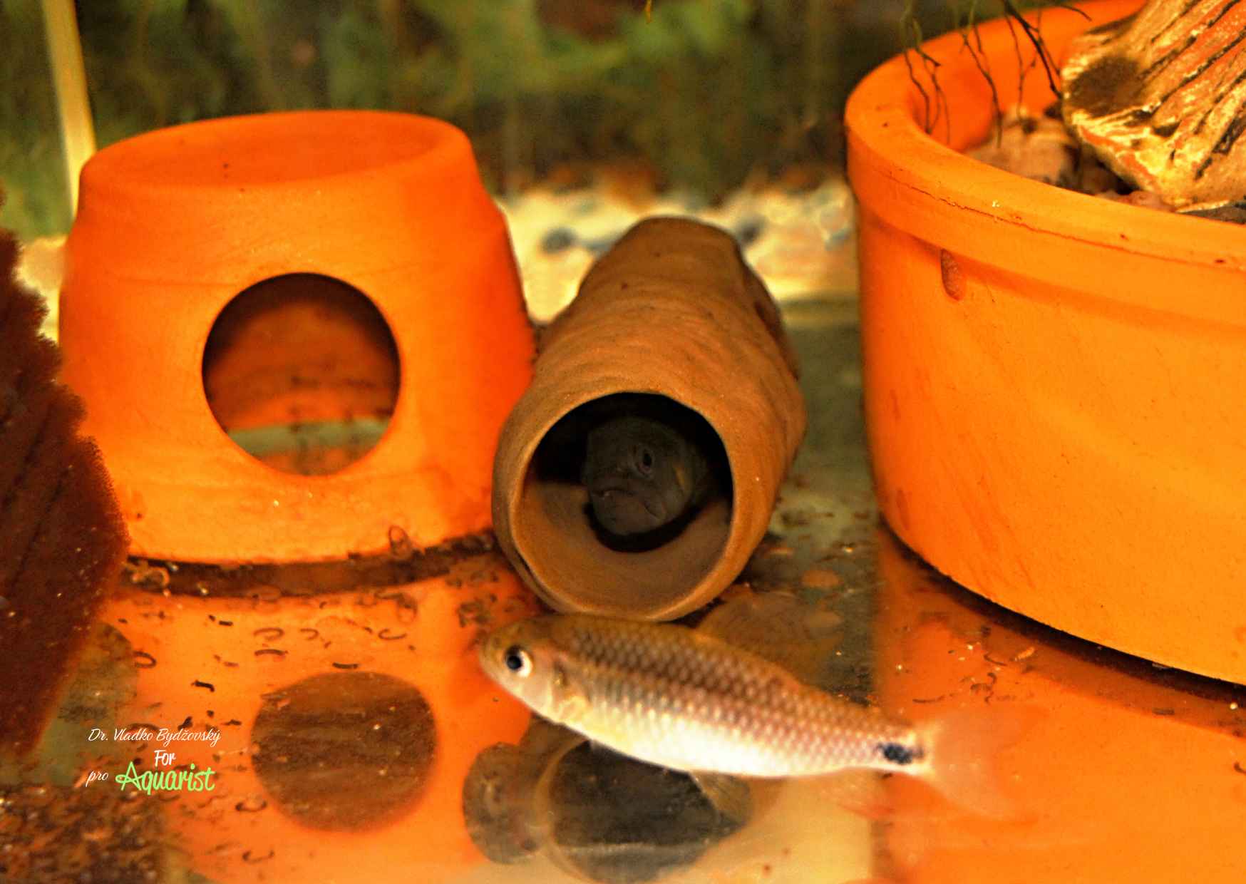- The female often stands for hours in front of the tube, which is permanently inhabited by the male (40-liter aquarium), weeks before her own spawning.
