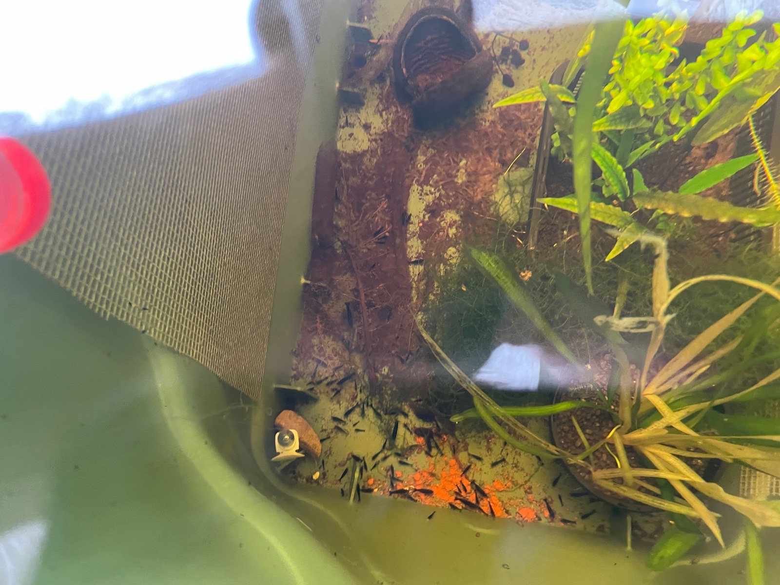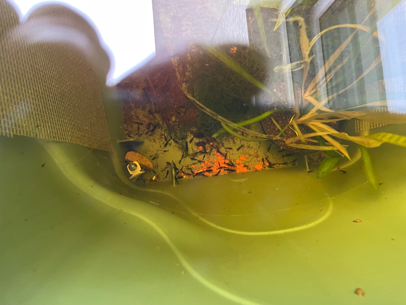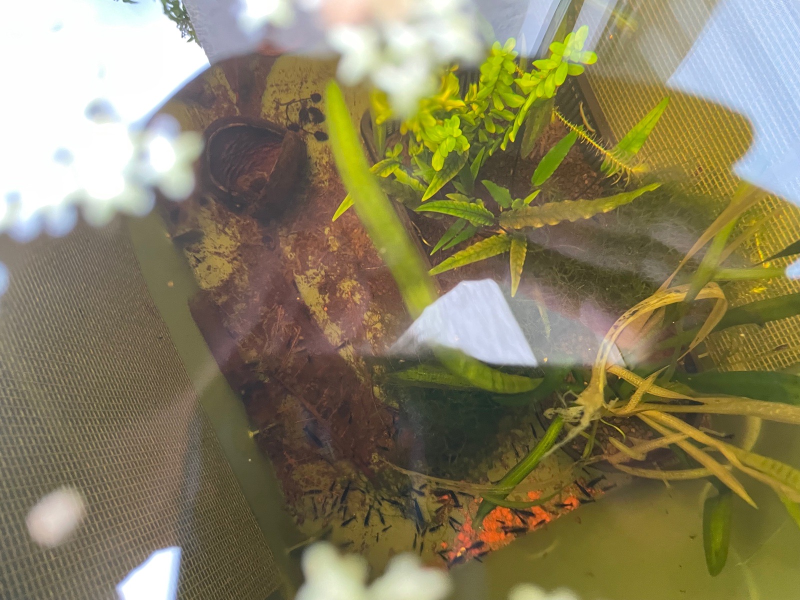 Letos jsem poprvé vyzkoušel chov krevetek neocaridina ve venkovní bezudrzbové nádrži. Po dvou měsících už se Krevetky množí. Počáteční stav při založení byl 50 krevetek, nyní je jich odhadem kolem 180. Další fotky vloženy cca po třech měsících od založení. Nádrž dobre prosperuje, Krevetky vypadají spokojeně. V této velke nádrži se dorůstají Krevetky i větších rozměrů (přes 3cm).