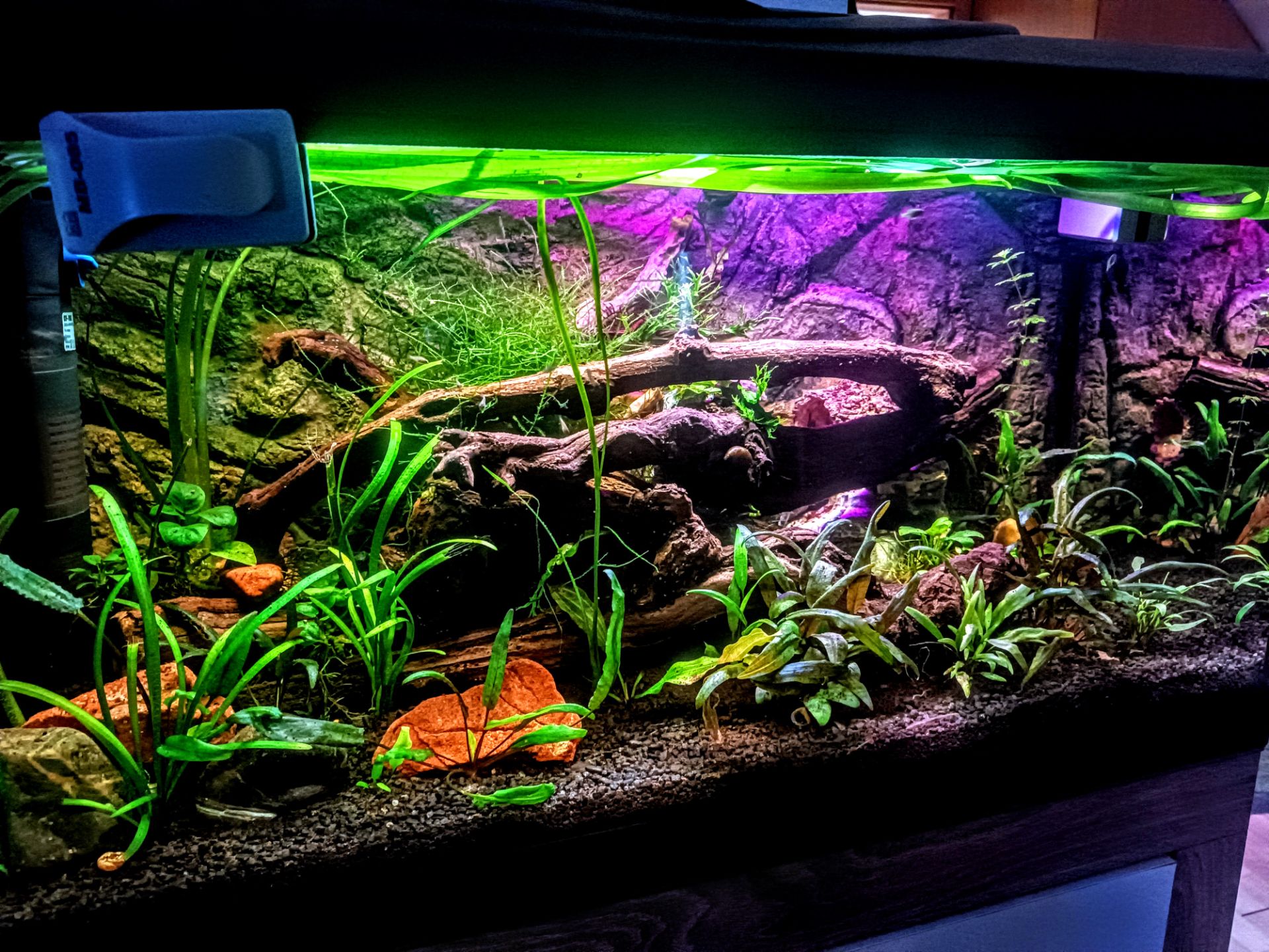 Pokus o vytvoření biotopu africké řeky Ruaha. Samozřejmě se nejedná o přesný biotop. Rostliny, ani proudění vody tomu neodpovídá. Pokud někdo zná domovské podmínky těchto ryb, budu velmi vděčný za kontakt. Jedná se o ryby : Pseudocrenilabrus sp. Ruaha