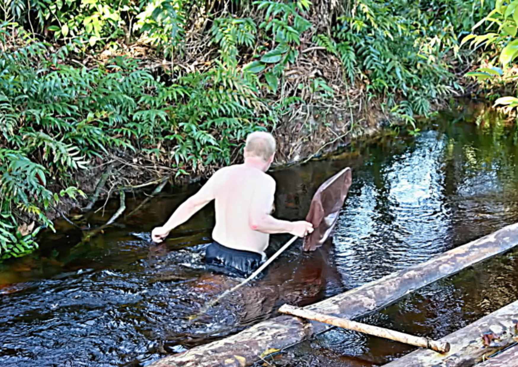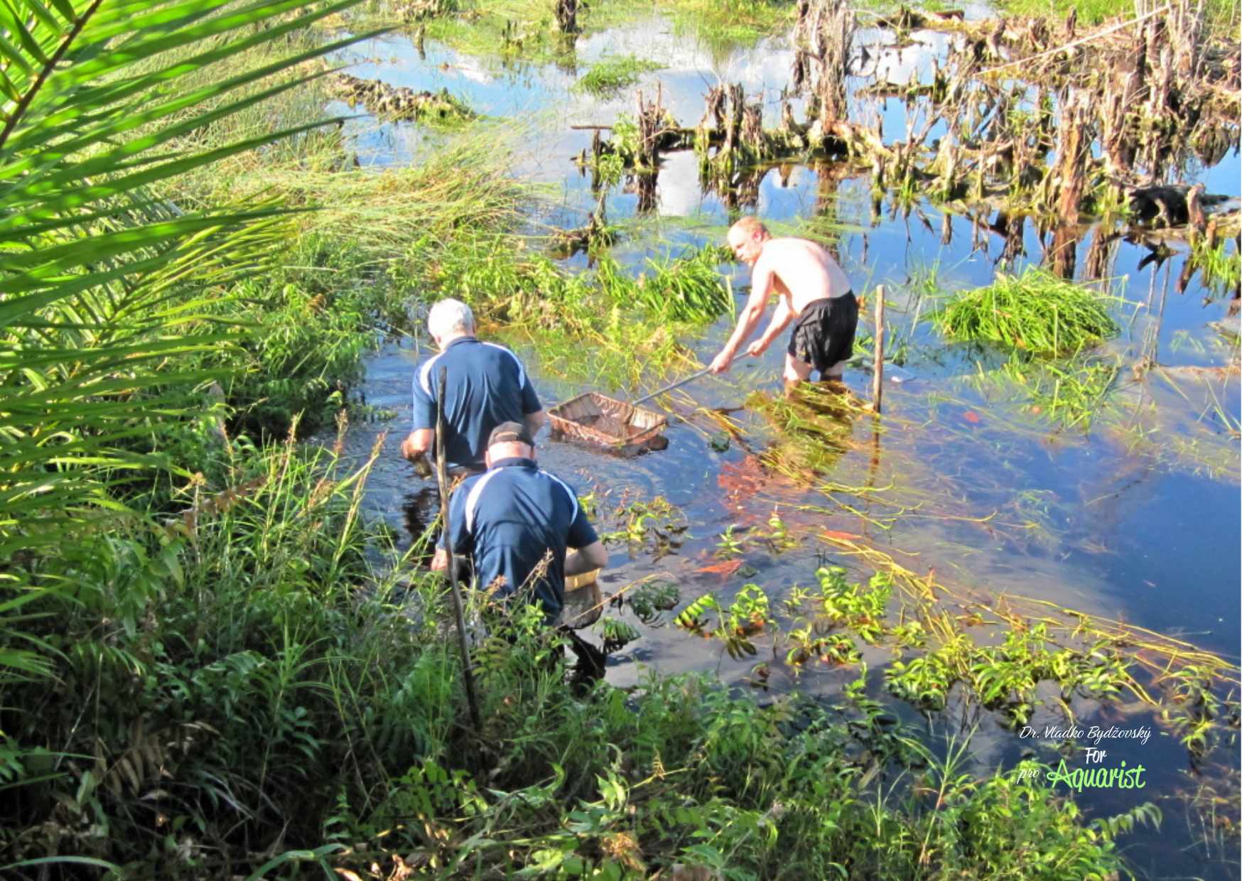 - Potok s černou vodou, 26 °C, pH 3,8, vodivost 41 µS/cm, nejvíce jsme zde lovili Rasbora trilineata (Razbora průsvitná).