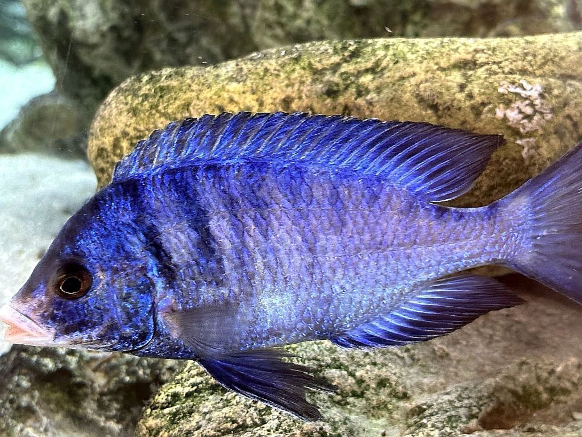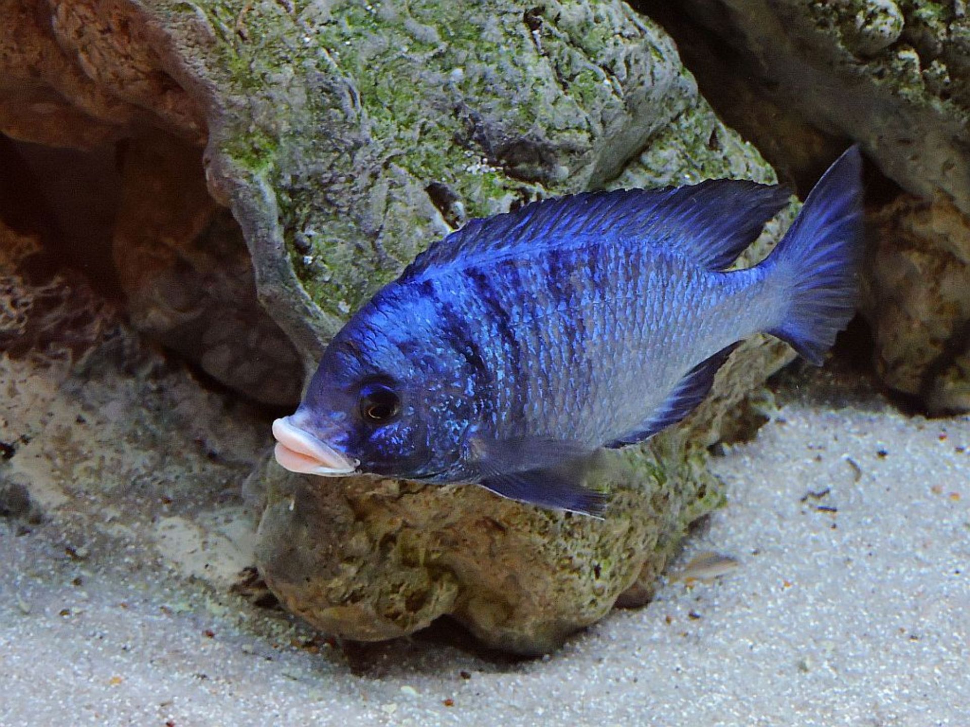 Bardzo piękny i również wyjątkowy gatunek Non-Mbuny z jeziora Malawi, który dzięki swojemu wspaniałemu, cieniowanemu, błyszczącemu niebieskiemu ubarwieniu i białym, grubym wargom stanie się prawdziwą ozdobą każdego akwarium. Te ryby mają imponujące, majestatyczne zachowanie w większej grupie. Bardzo mi się podobają i hoduję je w swoim akwarium w stylu Malawi od wielu lat. Chociaż czasami dochodzi do bardziej dzikich starć, podczas których trzęsie się pokrywka akwarium.