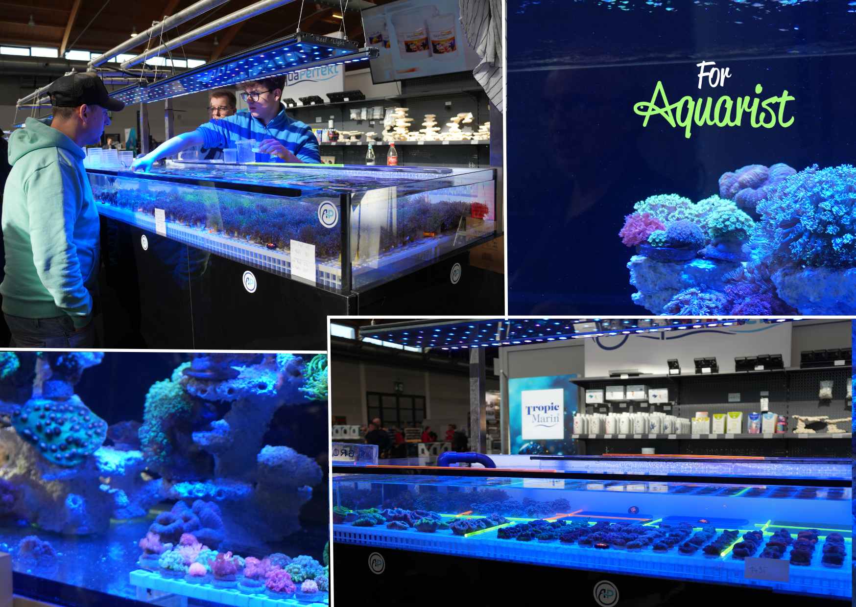 Widać, że morskie koralowce są pożądanym towarem, ponieważ od razu było kilka stoisk oferujących różnorodną paletę tych zwierząt. Były one wyłożone na ladzie jak kolorowe biżuterie. Piękno. Dla akwarystów, którzy chcieliby przenieść całe morskie akwarium ze wszystkim, co z tym związane, były akwaria z ceną czekającą na swoich właścicieli. Zwykle migotały w nich clowny, które są wdzięcznymi mieszkańcami niejednego domowego morskiego akwarium.
