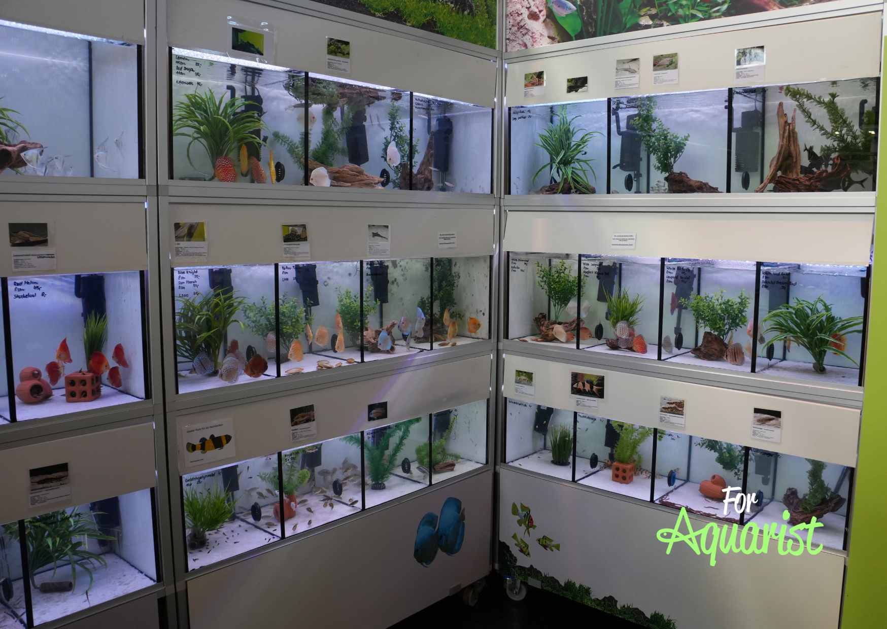 Jak przechodziliśmy między wystawowymi akwariami i obserwowaliśmy sprzedawane okazy, zdaliśmy sobie sprawę, że są tu karłowate cichlidy (Apistogramma), które ja osobiście szukałam najbardziej, były reprezentowane tylko minimalnie, raczej wcale. Trochę przetwarzałam to rozczarowanie, ale potem zaczęłam badać to, co tu jest i przestałam się martwić o to, czego tu nie ma. Zrobiłam dobrze, bo było tego mnóstwo i mogłabym tu spędzić znacznie więcej czasu.