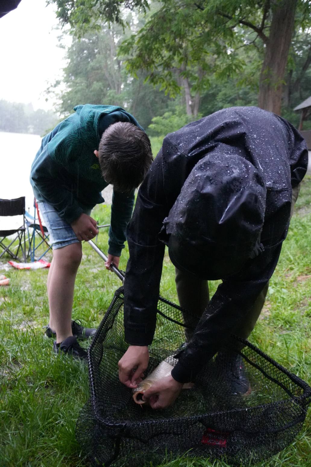 Pomimo deszczu niektórzy uczestnicy wytrwale oddawali się wędkarstwu. Wyniki stopniowo się pojawiały, a złotym gwoździem było ostatnie złowione karp (zobacz zdjęcie).