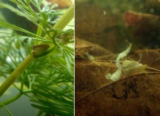 Wahania temperatury im nie przeszkadzają. Temperatura wystarcza pokojowa. Woda powinna być neutralna, ponieważ to są „wodne krewetki”, w miękkiej wodzie nie będą się dobrze rozwijać. Ich wrażliwość na chlor jest wysoka i przy wymianie wody powinniśmy o tym pamiętać. Przy wymianie możemy użyć wody z akwarium lub odstanej wody. Ponieważ mam wodę ze studni, wlewam ją prosto z kranu.