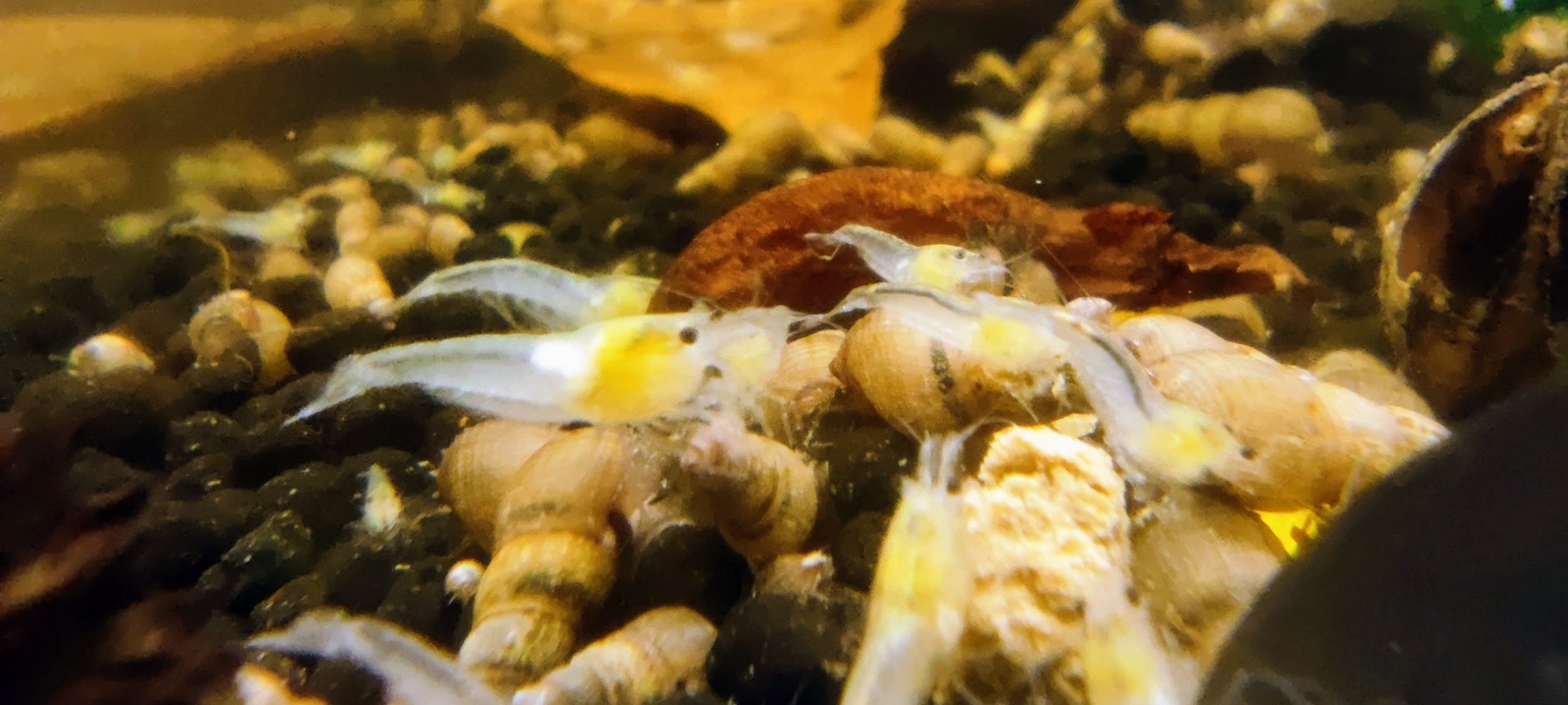 Nádrž je dobré osadit rostlinami a kořeny, případně další dekorací, která krevetkám poskytne úkryt. Jako vhodnou dekoraci lze použít půlky kokosových ořechů, sušené listí, bambus apod.