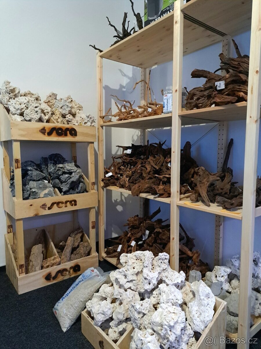 akvarijní potřeby, hardscape a techniku.