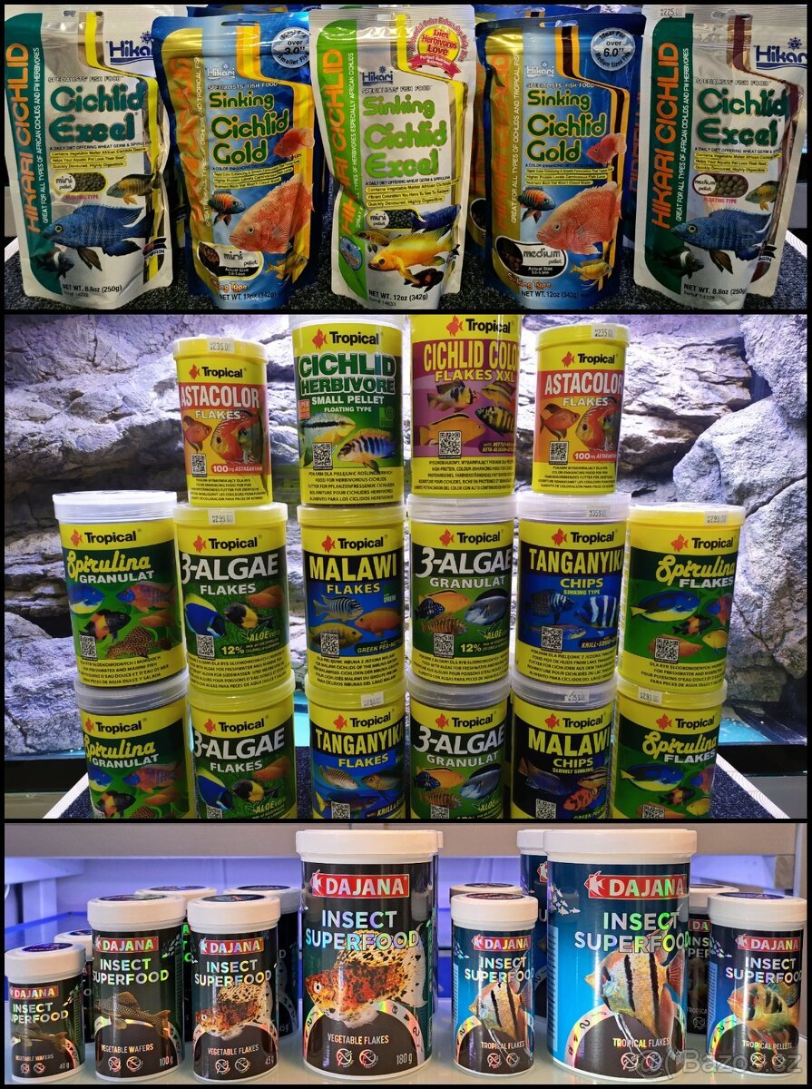 V nabídce máme i krmiva SERA, TROPICAL, DAJANA, HIKARI,