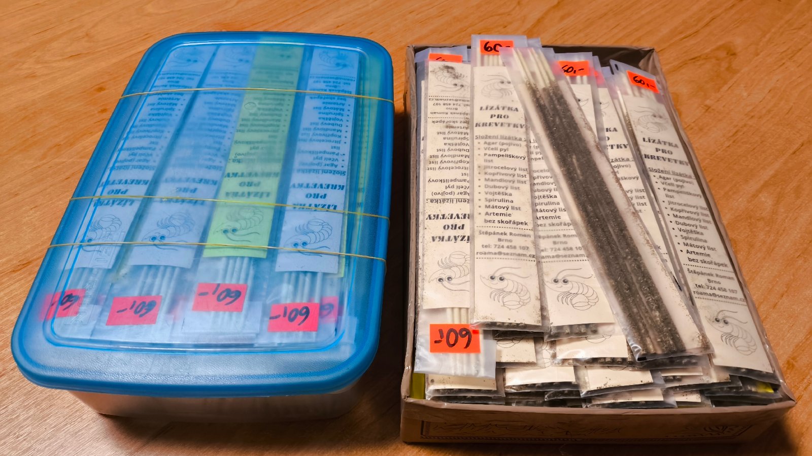 moje vlastní ruční výroba oblíbených tyčinek(lízátek) pro krevetky i rybky.