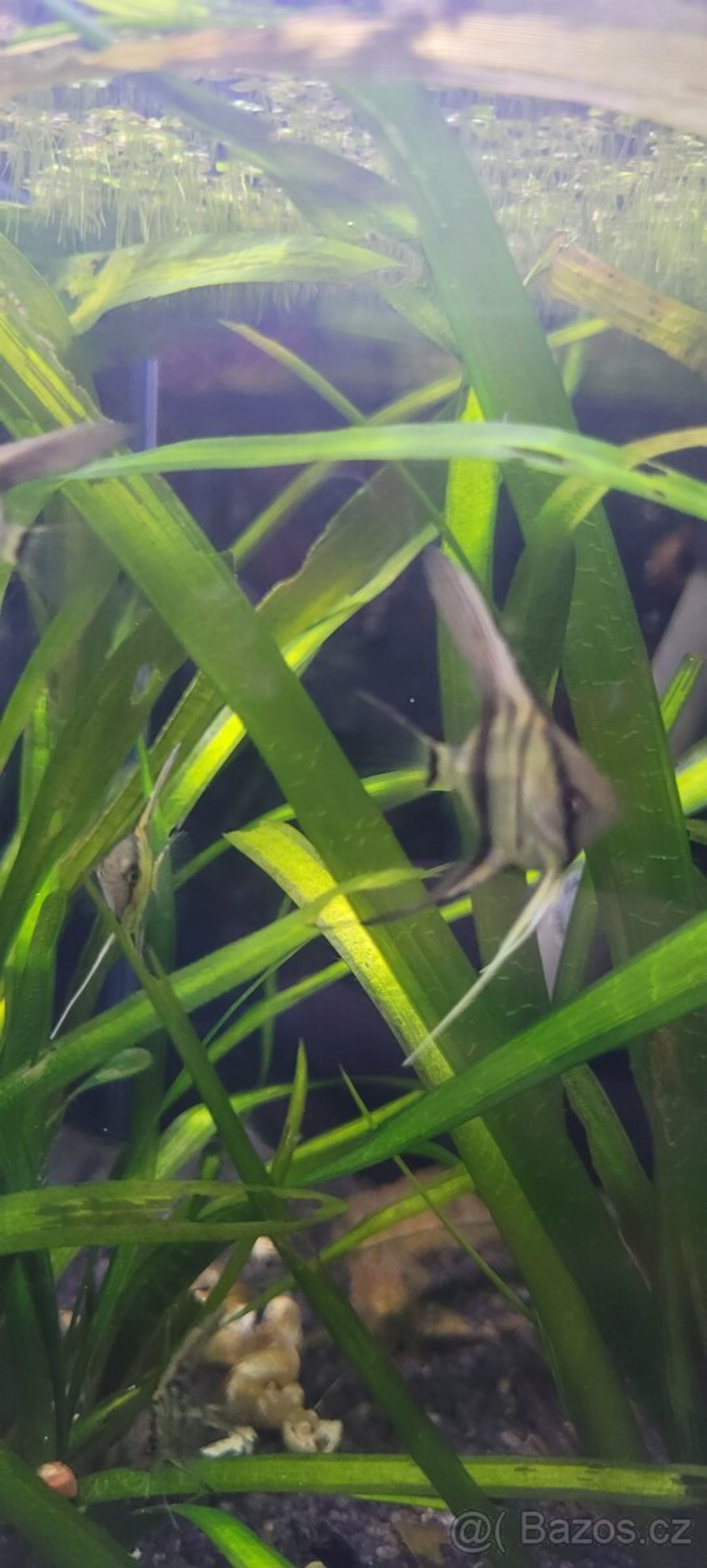 Nabízím skaláry. Vlastní odchov a celkem máme 8 ks. Cena 35 kč/ks nebo za dvě balení krmení pro skaláry.