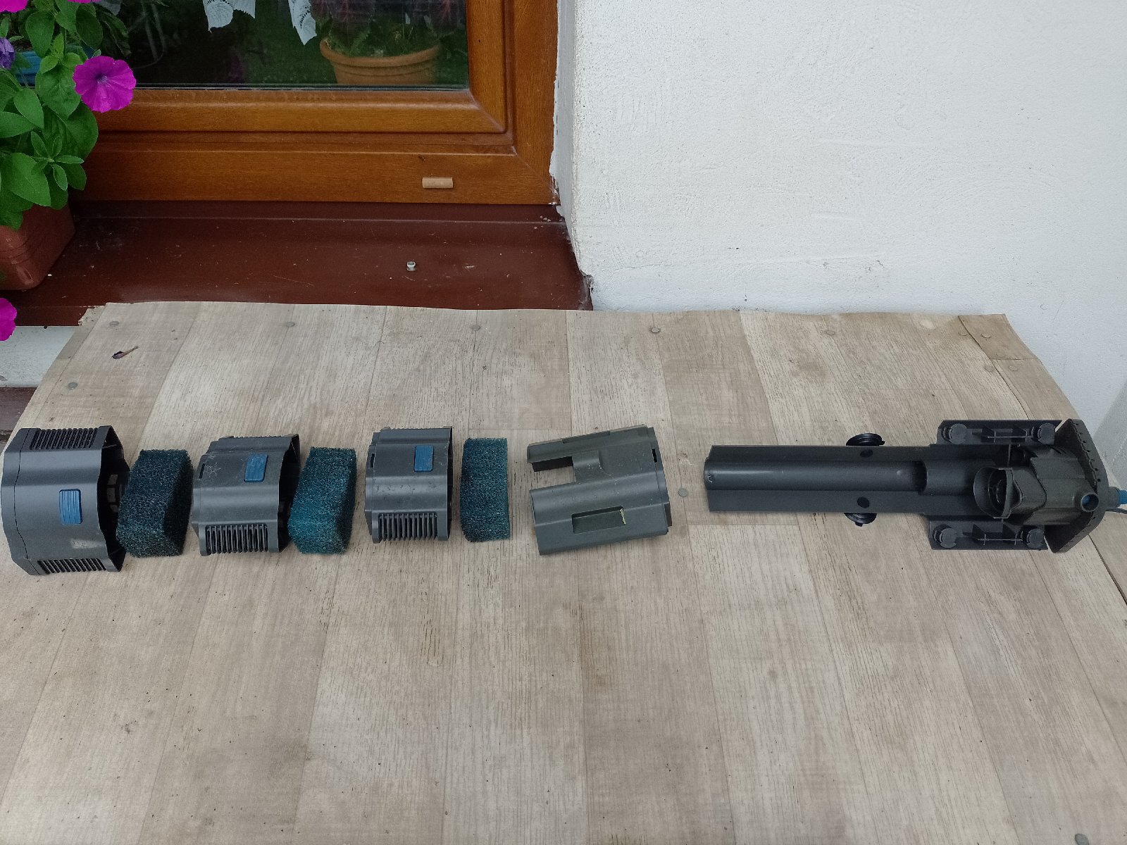 Vnitřní filtr vhodný do rohu akvária, při údržbě stačí vytáhnout moduly s medii, a čerpadlo zůstává v nádrži, drží na magnetech. Více možností výtoku vody (proud nebo sprcha), integrovaná šachta na topítko Oase. Pracoval v nádrži u mně asi tři roky, ale teď je nahrazen výkonnějším. Předání Brno po domluvě. Pořizovací cena nového asi 1500 Kč, tento za 500.