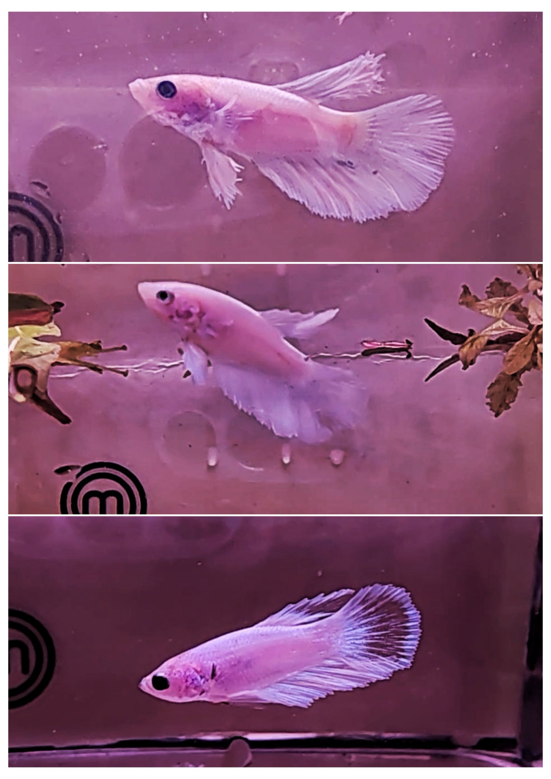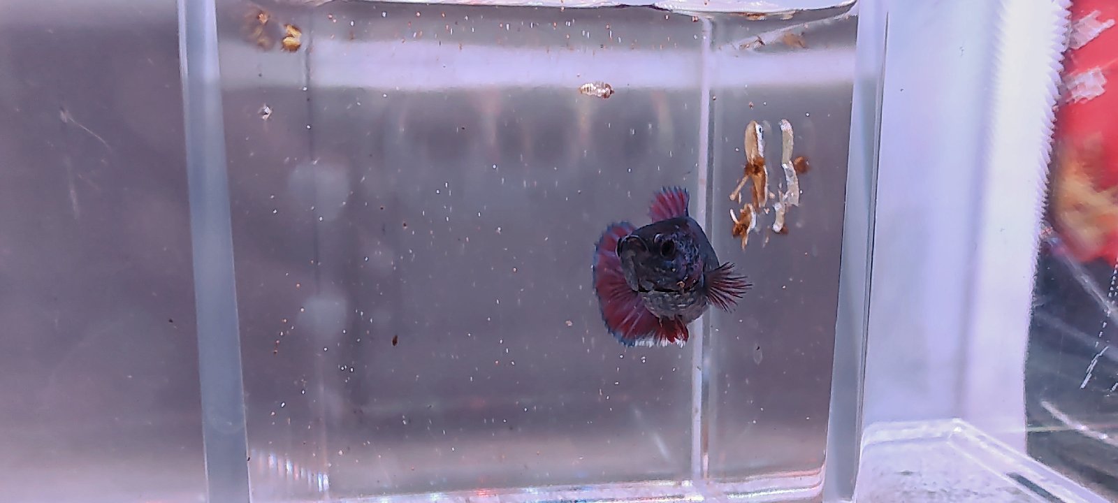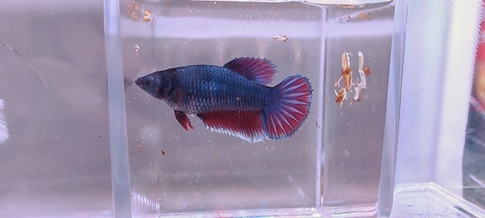 Barvy: Modré tělo, červené ploutve s bílým konci.