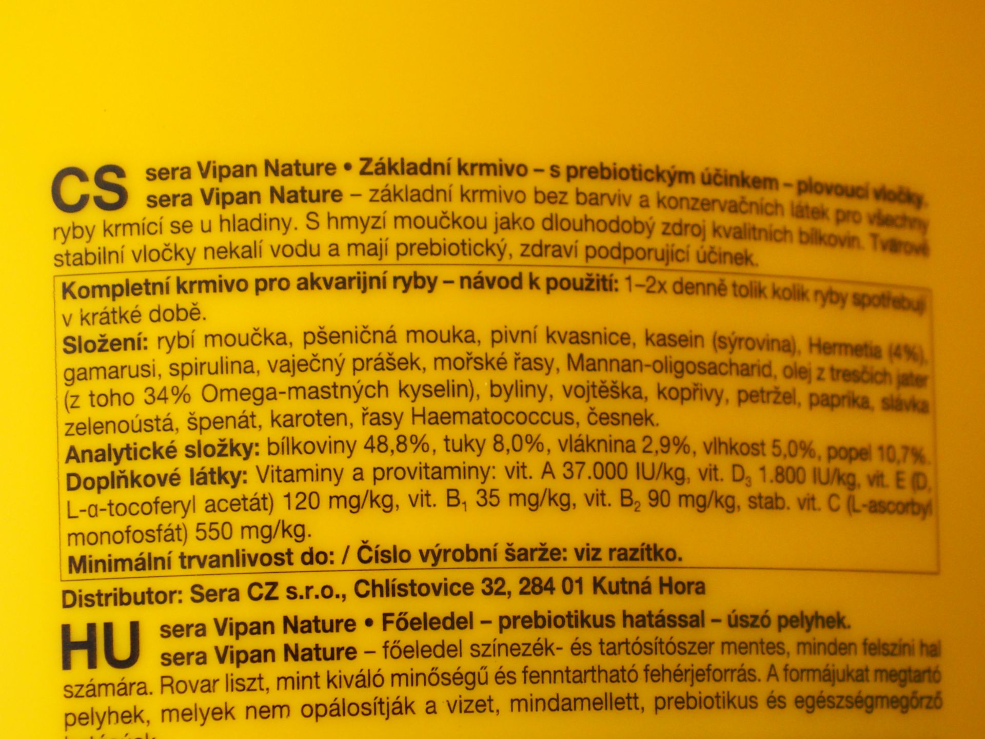 Nabízím rozvažovaná značková akvarijní vločková krmiva Sera Vipan nature (expirace 4/2027) a Sera Flora a San(expirace 9/2026). Krmivo bude rozvažováno z velkých chovatelských balení a baleno do uzavíratelných zip sáčků. Možno i zaslat přes Zásilkovnu (cena dle tarifu, standartní cena je 90 Kč, dobírka 120 Kč).